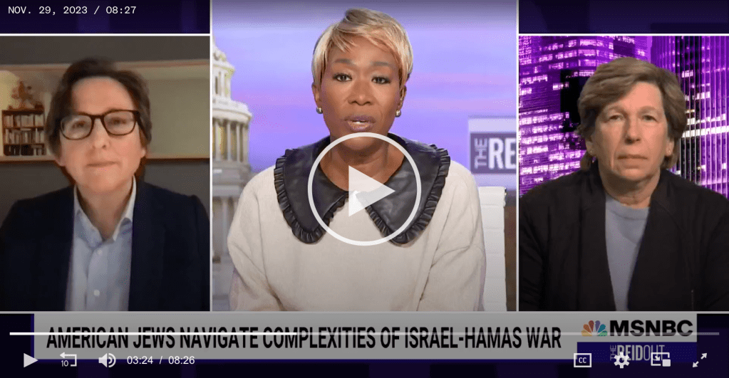 MSNBC: Rabbi Kleinbaum and Randi Weingarten and hope for peaceful ‘shared future’ for Israelis, Palestinians (November 29, 2023)